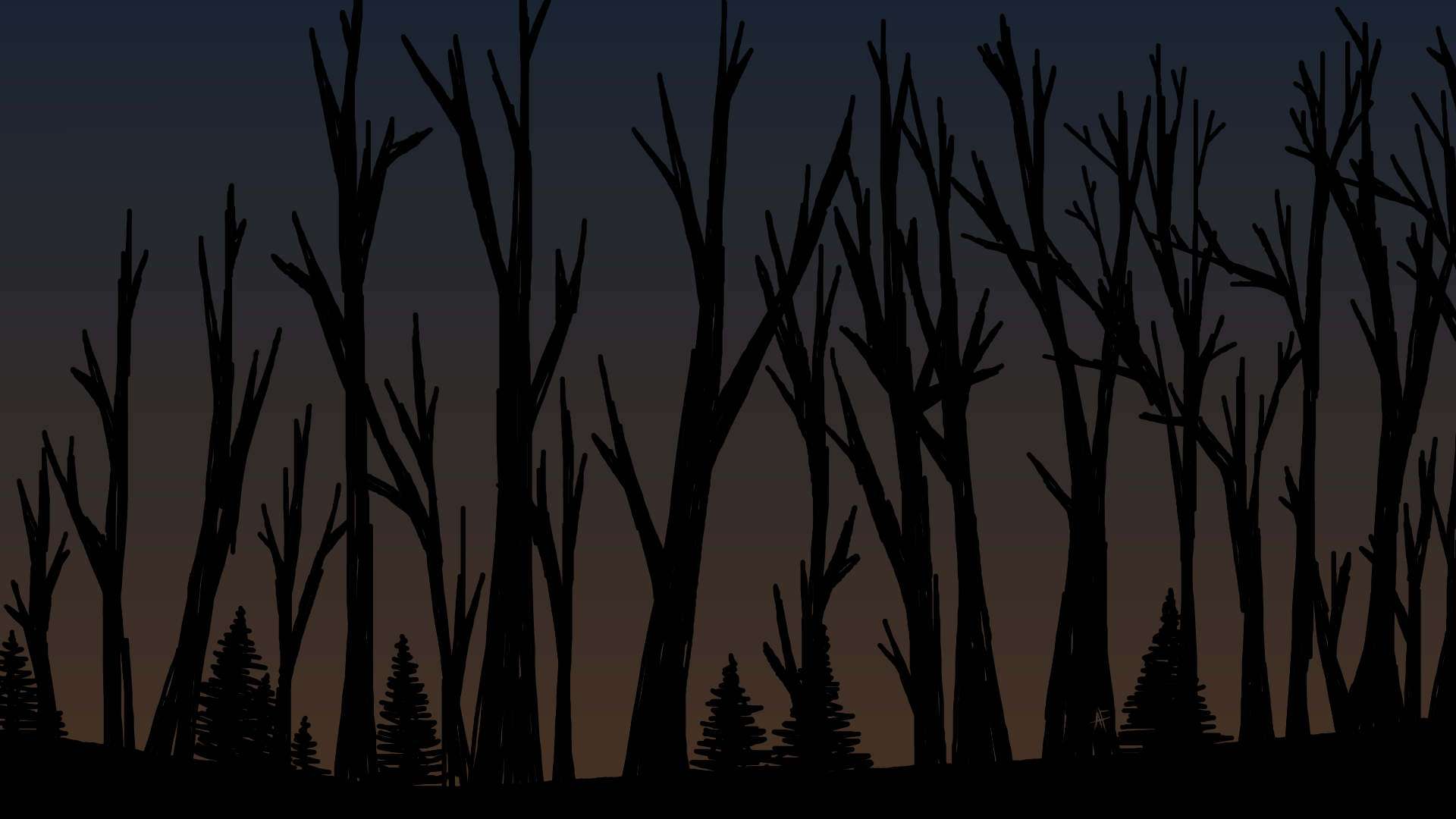 Drawn on 4/6/2026. Autumn forest scene I drew after watching Over The Garden Wall.