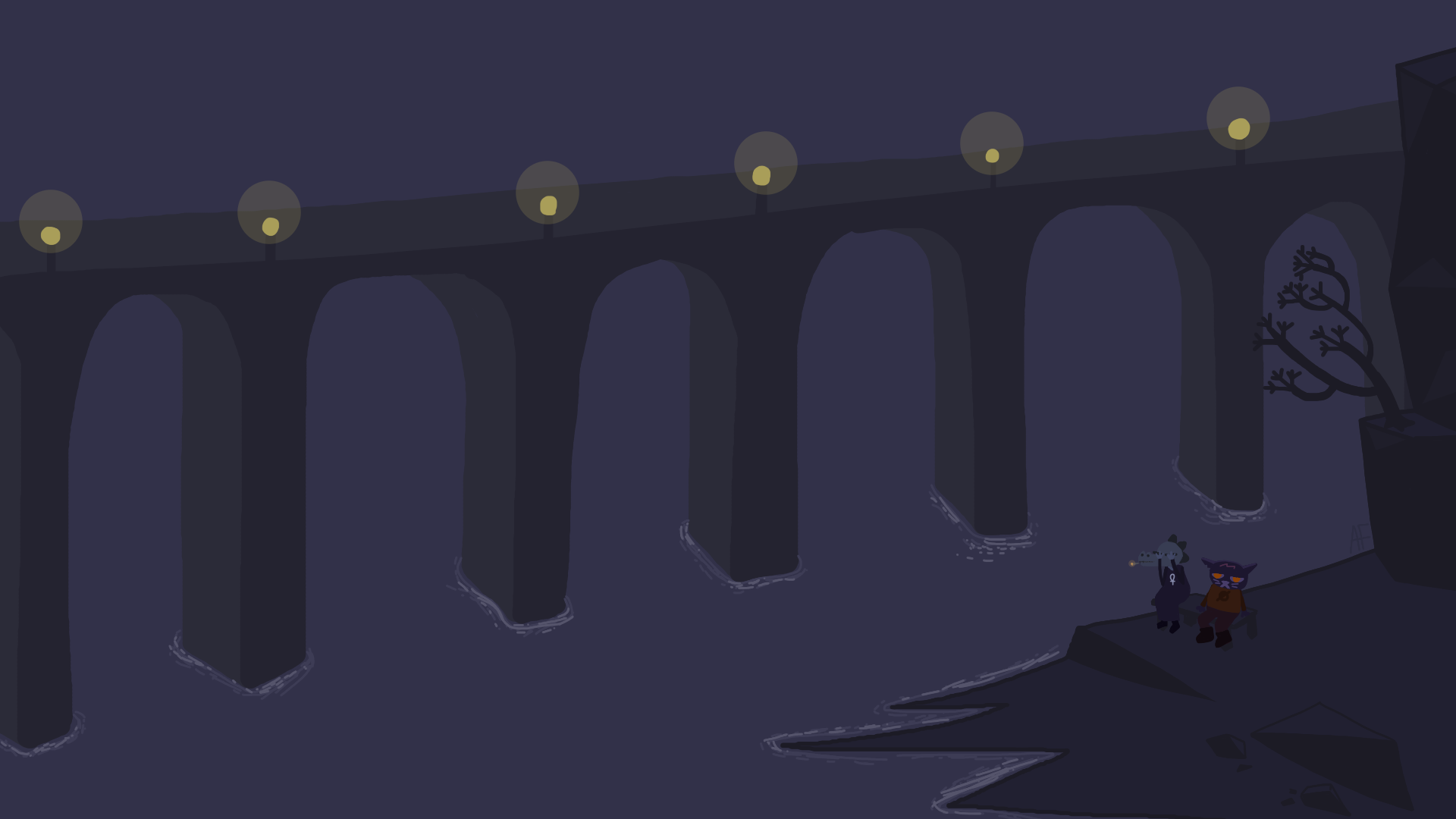 Drawn 4/7/2026. Night In The Woods art of Bea's "Proximity" hangout. Some scenes in media just stick out to me so much that I immediately have to stop what im doing and draw it.