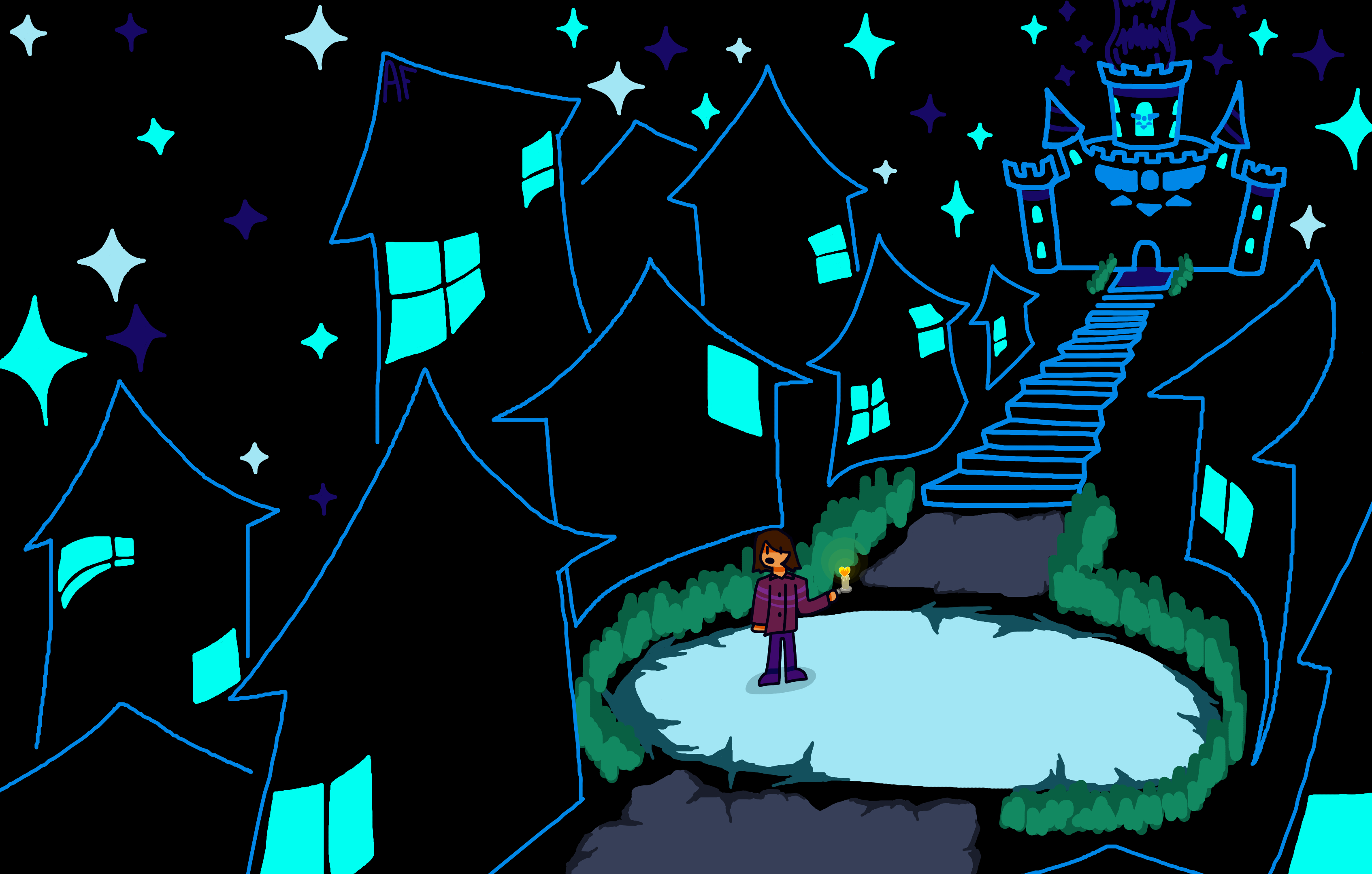 Drawn on 3/27/2026. Fanart for TheLibrarianYT. It is of him exploring Deltarune's Castle Town, right after his video on the game's first chapter released.
