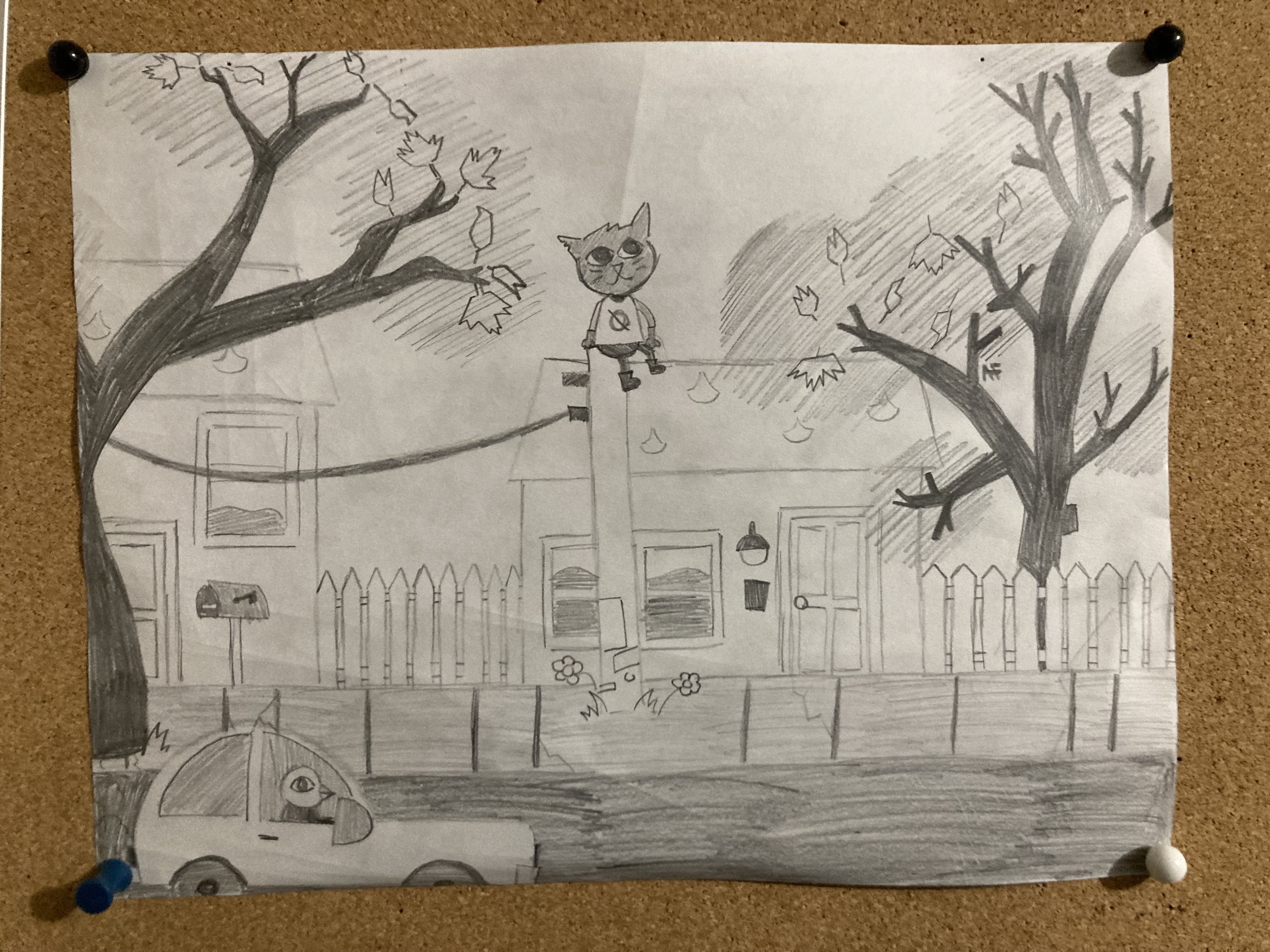 I... believe I drew this sometime in march. But with it being physical, I have no way to confirm this. First replay of Night In The Woods, had to stop on top of a telephone pole in front of Mae's house on the first day to just listen to the music and draw this.